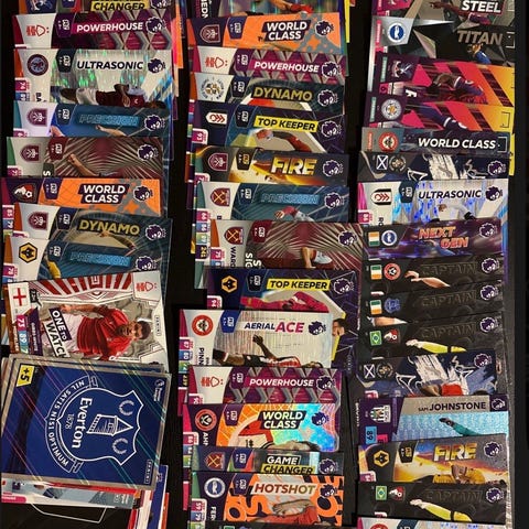 Topps Champions League fodboldsamlekort med spillere Lucas Paqueta, Marcus Rashford, Thiago Alcantara og Federico Valverde. Kortene inkluderer forskellige temaer som Legendary Element, Limited Edition, Finisher, Battler og Man of the Match Signature Style. Hvert kort viser spillerens statistik og tilhørende klub, velegnet til samling eller bytte.