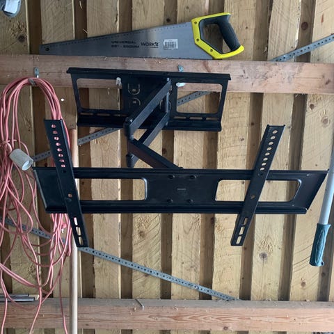 Vægstativ til TV. Kan trækkes ud og drejes. Brugsspor, fungerer upåklageligt. Passer til et 50" TV.