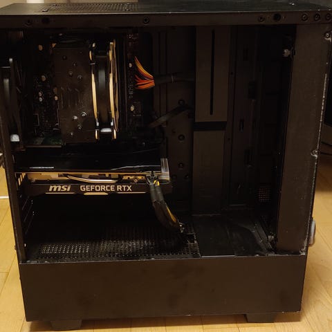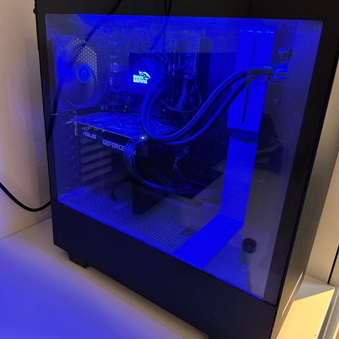 Alt er installeret i et NZXT kabinet med glas sidevindue.