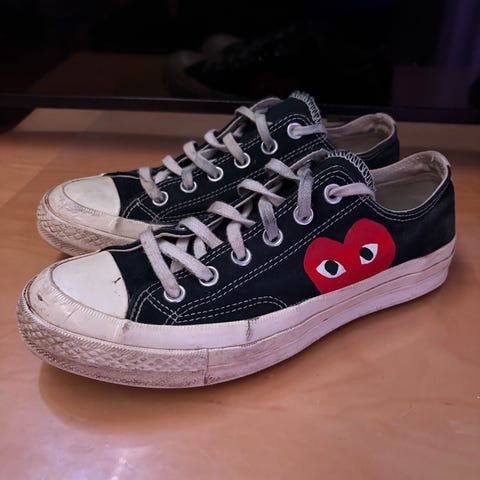 Comme des Garcons PLAY x Converse sneakers. I rigtig god stand, og ikke brugt særlig meget. Lidt brugsspor på gummien, som vist på billederne.