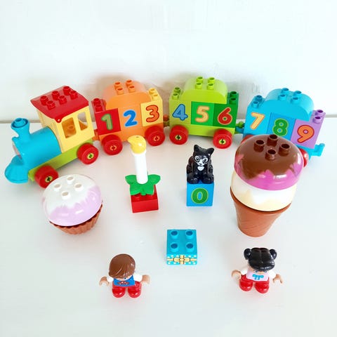 Lego duplo taltog med lys og kage. Indeholder tallene fra 0-10.