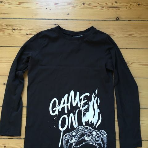 H&M Game On børnetøj i blå farve, størrelse 170, designet til drenge. Sættet består af en langærmet top med print og matchende bukser.