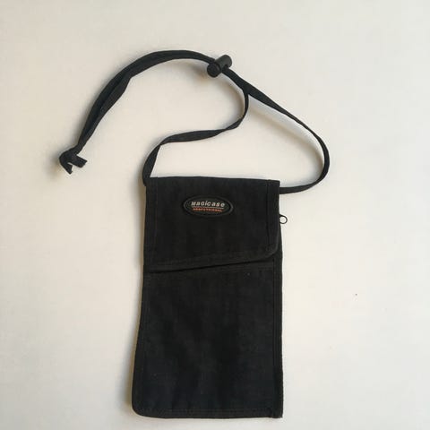 Magicase PROFESSIONAL, Pengecat i sort nylon med indstillige rem til pas, rejsepapirer, penge, mobil m.m. Hold styr på pas, kort, rejsepapirer m.m. Godt og sikkert. Størrelse sammenfoldet h: 20 cm. og b: 12 cm.