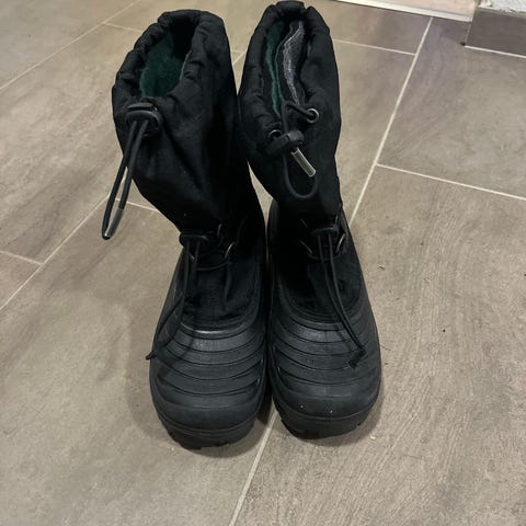 Sorel børnestøvler i størrelse 38, designet til unisex brug. Støvlerne er sorte med en isolerende foring, der sikrer varme og komfort. Ydersålen har et mønster, der giver godt greb på forskellige underlag. Materialet består af vandafvisende yderside og blød, varm foring, egnet til koldt vejr.