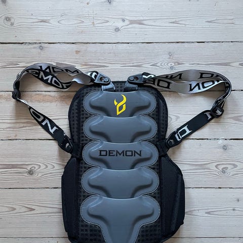 Rygskjold er i D3O der bliver hårdt ved impact.
