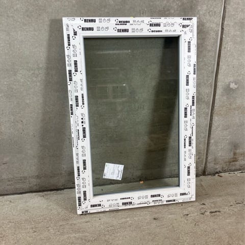 Dreje-kip vindue i plast med 3-lags crepi energirude. Greb medfølger løst. Produceret i REHAU PVC profiler.