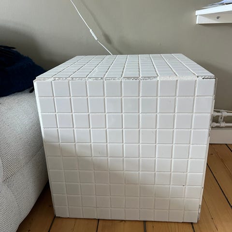 To fliseborde, der både kan bruges som sofaborde eller piedestal til planter.