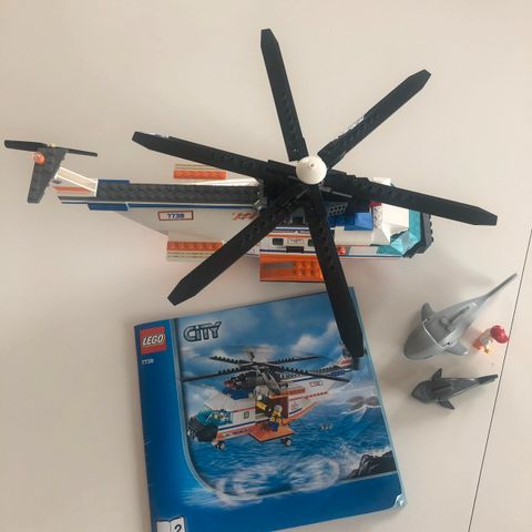 Super Lego sæt lige til st lege med. Lastbil, helikopter og 3 lego mænd.
