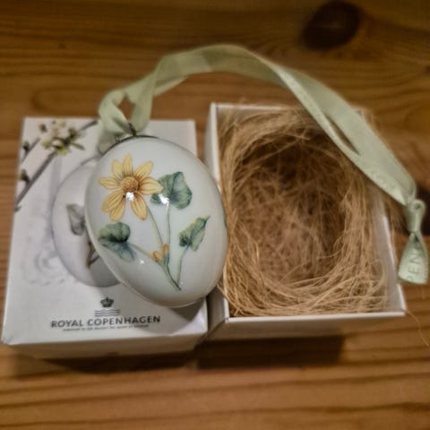 Royal Copenhagens påskeæg er dekoreret med typiske danske forårsblomster. Erantissens smørgule farve og grønne krave er et kønt syn i forårslandskabet. Som et tæppe breder den sig på græsplæner og i blomster- bede, og når solen titter frem, åbner de skålformede blomster sig og spreder deres duft, mens de sidste rester af sneen smelter væk. Porcelænsæggene fra Royal Copenhagen spreder forårsstemning i stuerne, når de hænger fra friske bøgegrene eller i vinduet. De kan også lægges i skåle eller fade, eller på middagsbordet, når gæsterne samles om påskefrokosten.