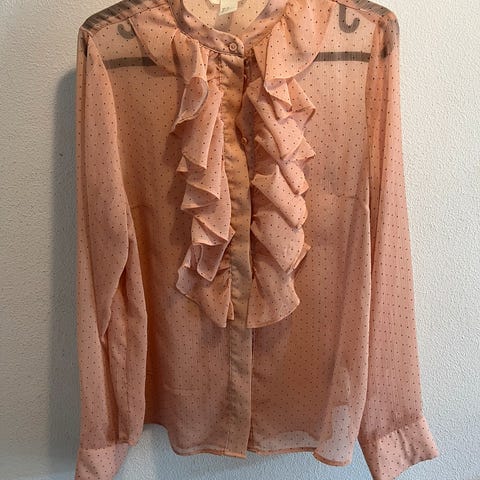 Super sød og fin bomuldsskjirte med lidt flæse til sæsonens look. Fin både til bux (stramme måske og lange støvler) eller nederdel.