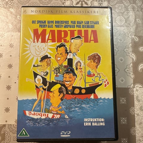 Martha DVD fra Nordisk Film Klassisker. Filmens cover viser tegneserieillustrationer og billeder fra filmen. Inkluderer instruktioner af Erik Balling. Sprog og undertekster kan variere.