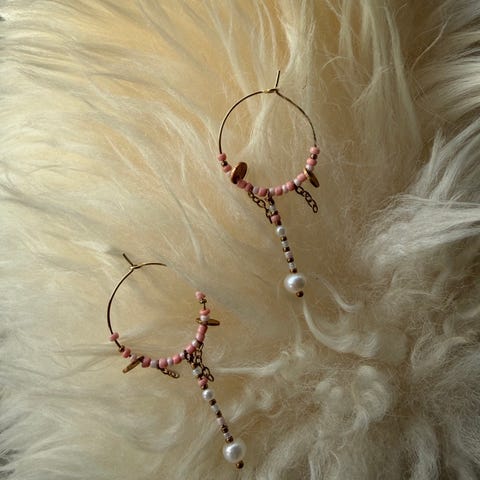Hoops med perler - øreringe i guld og hvide perler - god stand