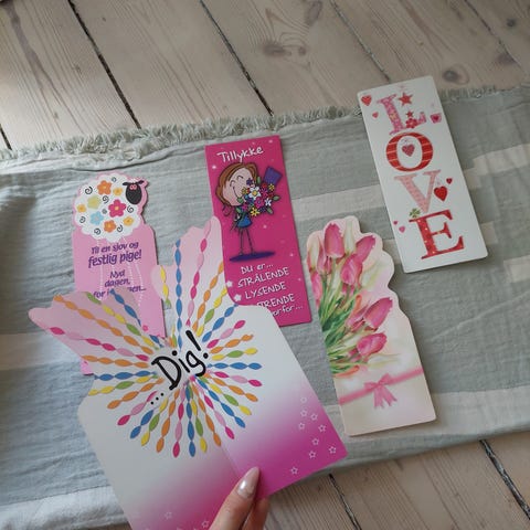 5 fine fødselsdag eller kærlighed kort sælges for 35kr