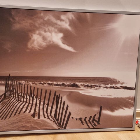 Stort billede til væggen med grå/sølv kant rundt om. Mål: 160x100 cm