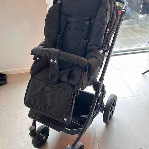 Easy klik system så I nemt og hurtigt kan tage sitdelen af stellet. Eller vende sædet. Aftagelig mavebøjle. Stort ventilationsnet i kalechen der sikrer god luft gennemstrømning på varme dage. Vendbart og højdejusterbart styr 76-113 cm.
