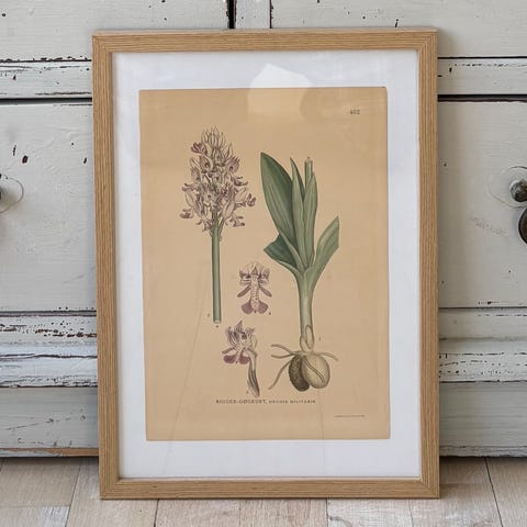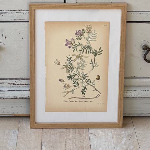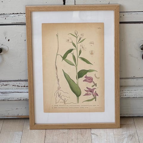 Gammelt svensk botanisk tryk i træramme 23 x 32 cm.