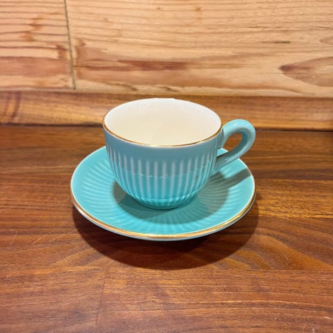 Kopperne er små med riflet kant og skål. Den ene er lyseblå, den anden er beige med blå.,Afhentes i:,Røde Kors Holstebro (661),Bemærk at mail, chat og beskeder ikke besvares, og varen skal købes på knappen "Gå til varen"
