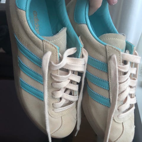 Skoene har en sporty stil med en kombination af læder og ruskind. De er grønne med en brun sål.,Afhentes i:,Røde Kors Holstebro (661),Bemærk at mail, chat og beskeder ikke besvares, og varen skal købes på knappen "Gå til varen"