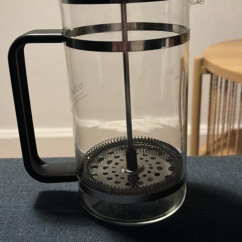 Produktet er en stempelkande i rustfrit stål med en glat overflade og en rund form. Den har et ergonomisk håndtag.,Afhentes i:,Røde Kors Holstebro (661),Bemærk at mail, chat og beskeder ikke besvares, og varen skal købes på knappen "Gå til varen"