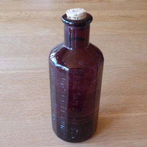 Produktet inkluderer en flaskebeholder og en papirbrochure. Beholderen er mørk, cylindrisk og lavet af pap. Flasken er glas med en etikette og dekorativt design.,Afhentes i:,Røde Kors Holstebro (661),Bemærk at mail, chat og beskeder ikke besvares, og varen skal købes på knappen "Gå til varen"