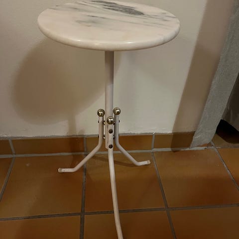 bordet har en elegant og stilfuld design med en marmorplade og metalben.,Afhentes i:,Røde Kors Bellinge (461),Bemærk at mail, chat og beskeder ikke besvares, og varen skal købes på knappen "Gå til varen"