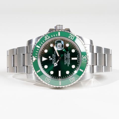 En moderne klassiker og en af de mest eftertragtede Submariner-modeller, kendt for sin karakteristiske grønne keramiske krans og grønne “sunburst” skive.