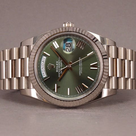Et imponerende statement piece i massivt platin med ikonisk President-lænke, og en uforlignelig kombination af diskret elegance og teknisk perfektion.