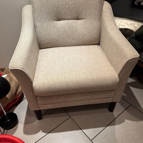God lænestol med god siddekomfort, oprindelig sort men har selv givet det nyt lyserødt look da min kat har kradset lidt i det sorte indenunder, derfor den billige pris, stolen fejler absolut ikke andet, nyt cover til stolen kan evt. købes billigt på Shein hvis man ønsker en anden farve, afhentes i Hvidovre.