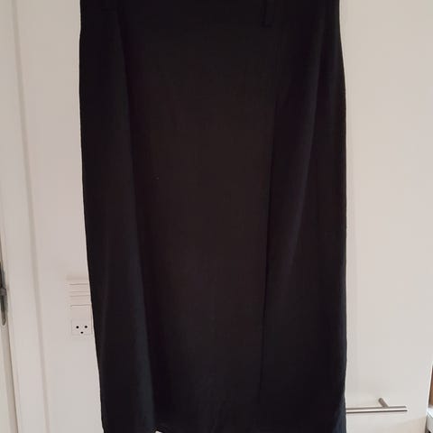lang pencilskirt, str. 42, Support, Sort lang nederdel med knappelukning, pyntelommer, asymetrisk lukning og slids, mærke; Support