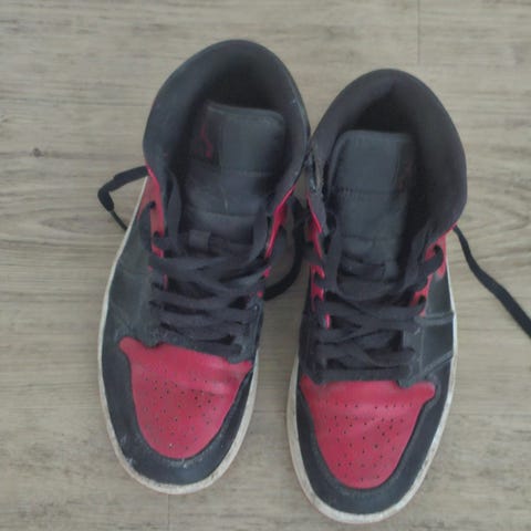 Nike Air Max højtop sneakers i sort og hvid farve. Skoene har en synlig Air Max luftpude i sålen for stødabsorbering. Designet til herre med snørelukning og gummisål for greb og holdbarhed.
