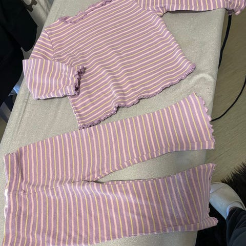 Sommersæt med sødt motiv - hvid bluse / T-shirt og lyserøde shorts til pige i str. 12 mdr - str. 86. Brugt, men i OK stand - se billederne