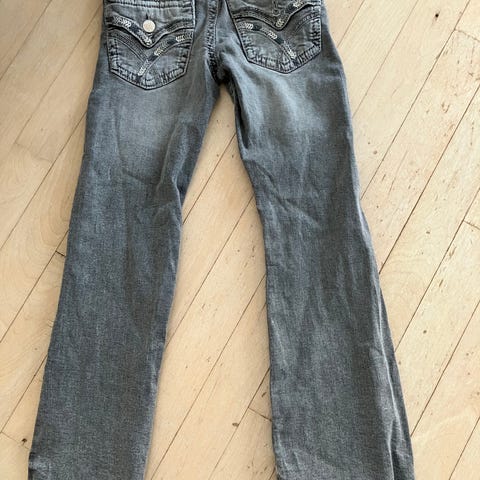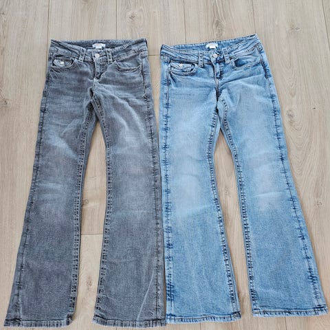 Farven er lidt svær at beskrive, lys jeans med lidt skær ??