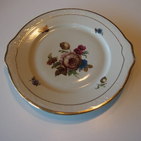 Porcelæn, KAGEFAD og SKÅL, Københavns porcelæns maleri, KPM: med sølvkanter, aldrig været i opvaskemaskine. (navnet på stellet kender jeg ikke?)