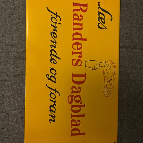 Randers dagblad Emaljeskilt. Super fin stand. Ingen reps. Se billeder.