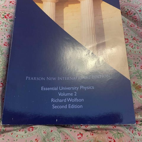 Pearson Essential University Physics Volume 1 by Richard Wolfson. This textbook covers fundamental concepts in university-level physics and is part of the Pearson New International Edition series.