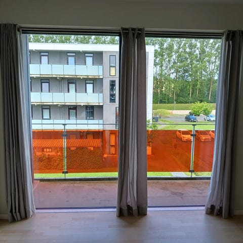 Andet gardin, komplet til ældrebolig i Magnus Kjærsgade i Holstebro. Gardin/stue m/kappe bxh 273x195, gardin sovevær. 183x167, Faber lamelgardin/dør 98,5x218, WH persienner lysgrå/køkken 140x123 og 74,7x123, Bruseforhæng 2 stk. 175x200 cm