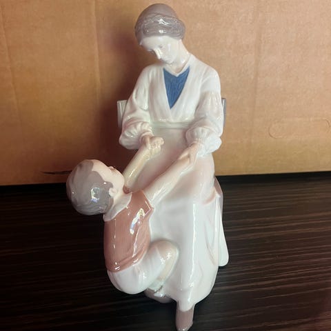 Porcelænsfigur, B&G 1848, motiv: Dreng bærer lille pige på ryggen, flot 1.sort.