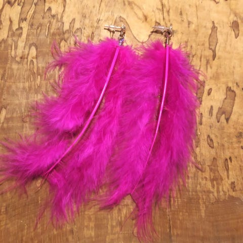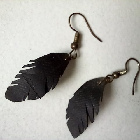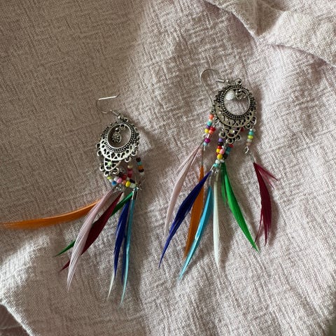 Håndlavede, unikke fjer-øreringe.