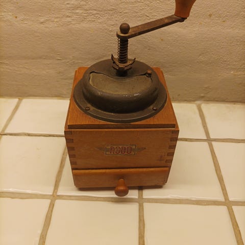 Antik kaffekværn og strygejern..