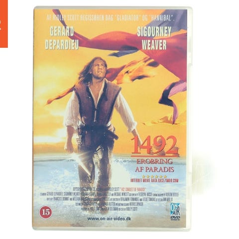 DVD filmen '1492 Erobring Af Paradis' med Gerard Depardieu og Sigourney Weaver. Filmen er en historisk drama, der skildrer opdagelsen af Amerika. Inkluderer originale coverbilleder og bagcover med filmens synopsis og informationer.