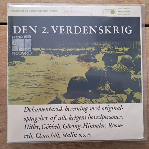 Der er 4 lp'ere og dette arkiv er lige til historieinteresserede og filminteresserede. Mest fra Englands krigshærgede land men også fra det Franske - rigt på anden verdenskrigs stemninger, musik og store taler (Churchill) dobbelt lp. sælges kun samlet - sjældent udbudt materiale. Se billeder for mere info