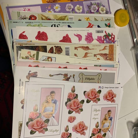 Diverse 3D-klippeark med forskellige motiver som blomster, børn og engle i forskellige farver og designs. Arkene er velegnede til hobbybrug, scrapbooking og dekoration. Indeholder flere ark med farverige og detaljerede billeder, der kan klippes ud og anvendes til kreative projekter.