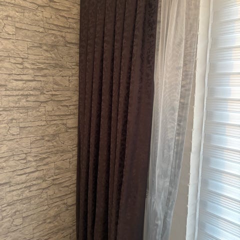To stk meget flotte og særlige mørklægningsgardiner, lysebrune med shine, lige til at hænge op på en skinne.