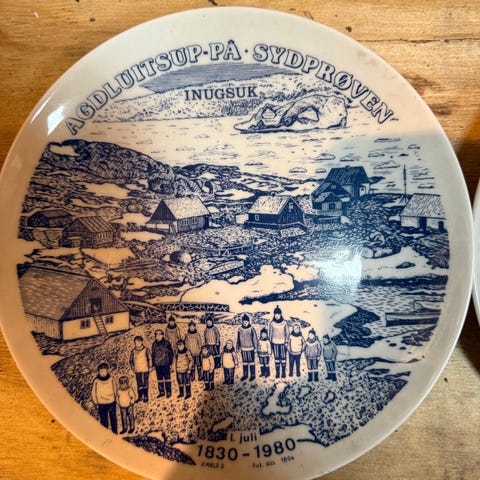 2 vægplatter fra Bornholm. Diameter på begge er 24 cm. Platten med bornholmeruret og den hvide kat er gammel og har en mat glasur. Den anden vægplatte er nyere og har en mere blank overflade. Sælges samlet for 50,- kr. (eller 30,- pr. stk.)