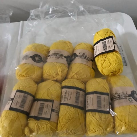 Økologisk bommuldsgarn fra mayflower , der er 10 nøgler i hver pakke til 60kr pakken
