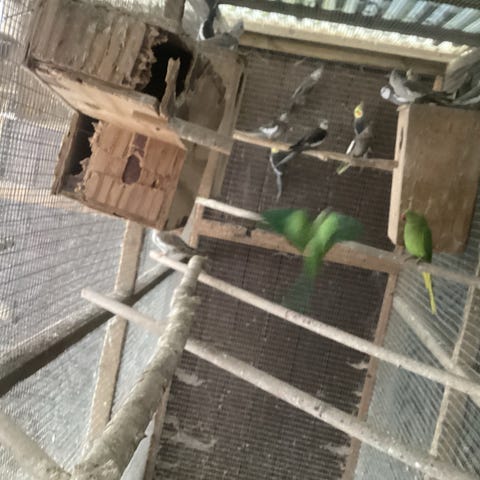5 hvide vagtler , 1 kok og 4 Høns.