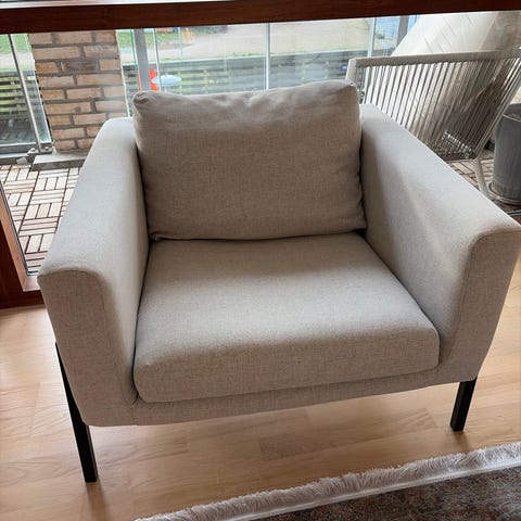Jeg sælger disse fine to lænestole da de desværre ikke passer ind i vores nye lejlighed. De er så fine og pæne samme, med sorte ben og lysegråt betræk.