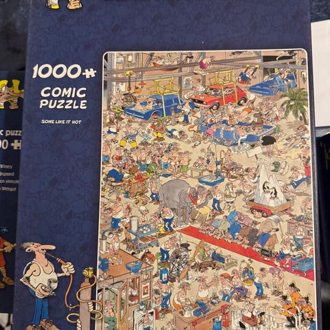 Hip Hop Puzzle med 1000 brikker, illustreret af Mark S. Puslespillet viser en samling af hiphop-kunstnere i farverig grafik. Passer til voksne og børn, der ønsker en udfordrende og underholdende aktivitet.