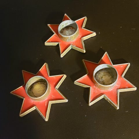 Produktet består af tre lysestager med en dekorativ stjerneform, designet til kronelys.