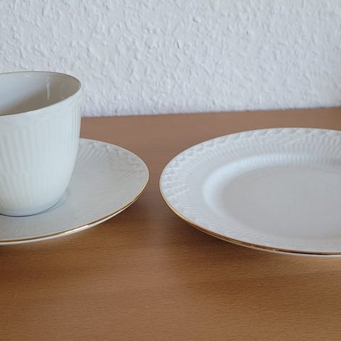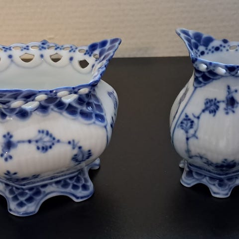 Sukker og fløde sæt fra Royal Copenhagen Tradition hvid halvblonde med guldkant